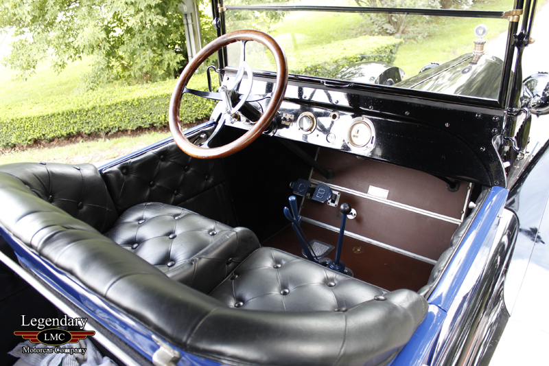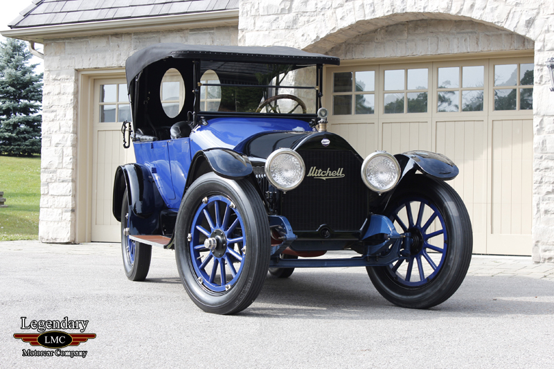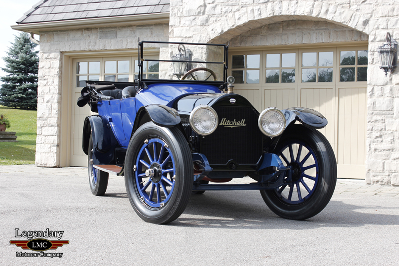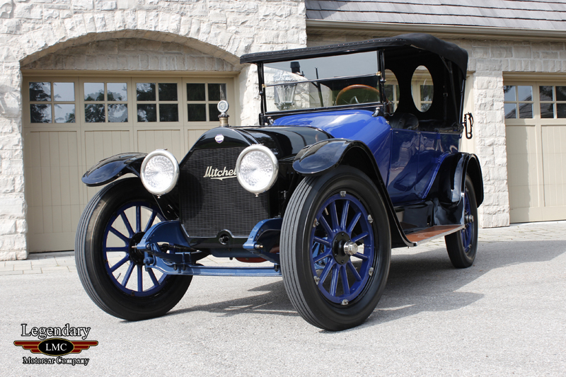 Reported to be one of only two remaining 1915 6 passenger touring cars left in existence today, this particular car was discovered tucked away after years of storage. A comprehensive restoration was completed around 2002 where it was done in correct Mitchell Dark Imperial Blue. Since that time the car has been shown at various shows and concours before being acquired by Legendary Motorcar. The paint has been beautifully polished to a show ready finish and the black interior looks inviting with luxurious, soft seating for 6 with the use of the folding jump seats. To this day the car continues to function remarkably well. Its fires up quickly and easily with the foot operated electric starter. It is powered by a 248.8 cubic inch six cylinder engine with a 3 speed transmission and a 4.49:1 ratio rear axle to tackle the tough terrain of early roads. The car also has a very conventional driving style with throttle pedal, brake and clutch making it an easy car to learn how to drive and enjoy. All the unique Mitchell features are still present and accounted for including a sliding On/Off switch showing when the car is running and generator is functioning and even flip up headlights for making night time repairs to the engine. When new it was the pride of the Wisconsin automobile manufacturing industry, now it remains a very special and very unique example of the early automobile.