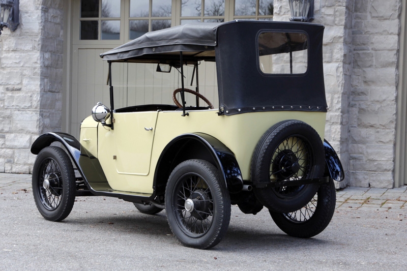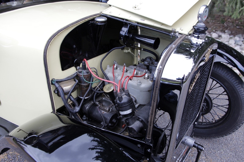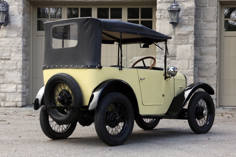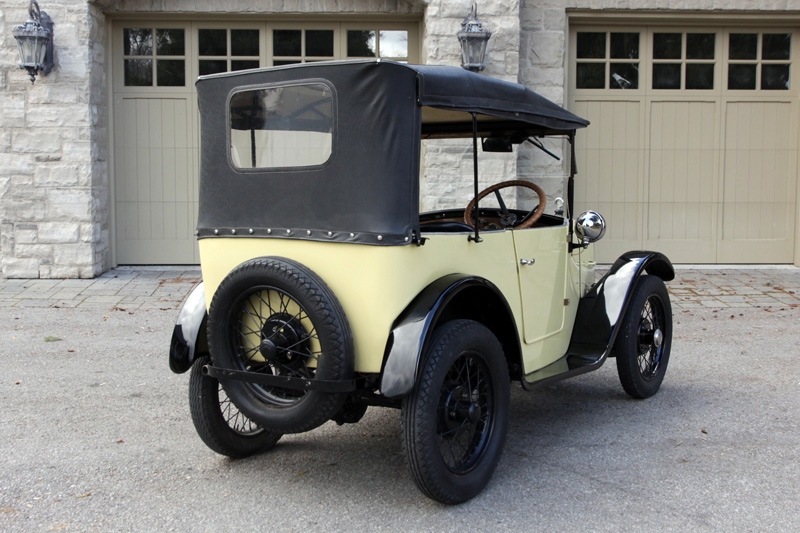 This particular Seven is what is known as a "Chummy". Many say that the name comes from the small interior and you would have to be "chummy" with your passenger! The Chummy is the touring model of the Austin 7, looking very much like a small scale Model T touring car. Setup with 4 seats, two door body style and a convertible soft top, this Chummy is powered by the Seven's 747cc inline 4 cylinder engine rated at 10hp with 3 speed transmission, plenty of power for its day and also considering it weighs just 794 pounds. The car has been nicely restored in a light shade of yellow with black fenders, black interior and matching black soft top. The car is a remarkably fun car to drive and enjoy. It starts quickly with the electric starter and has the same driving style as a modern car, clutch, brake and throttle pedal with an H pattern shifter. This Chummy is a very interesting and very unique classic which can be driven and enjoyed at a modest cost.