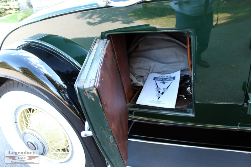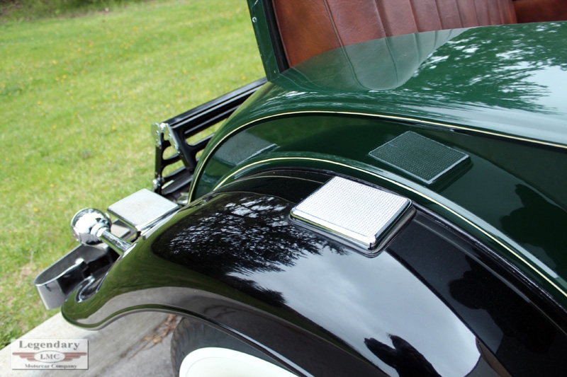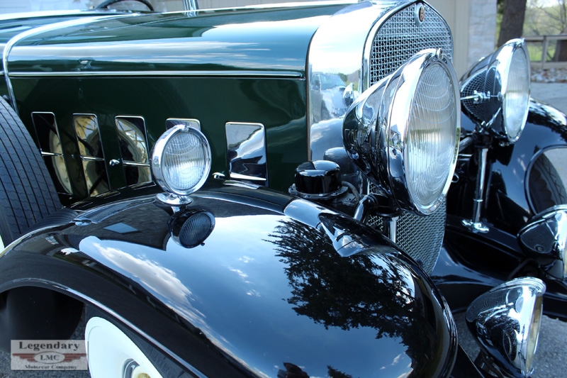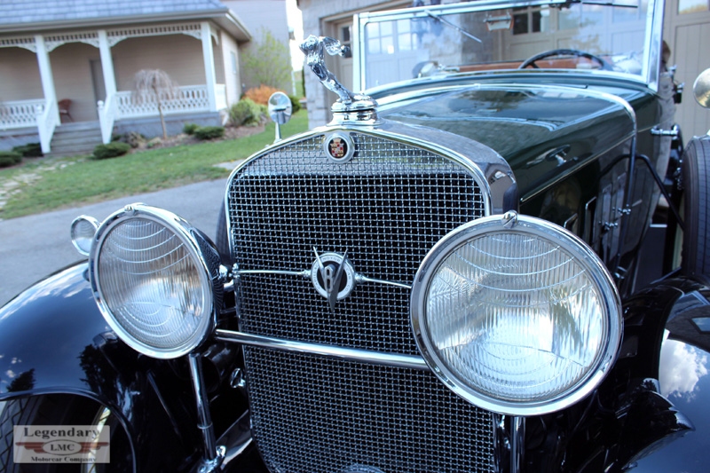 The 1931 Cadillac introduced new features that included a chrome stone guard radiator screen, single bar bumper and dual horns. The frame was designed with new side rails and the rear springs were mounted directly under the frame rails. The cooling system included a condenser tank. It also introduced hood side panels with five distinctive ventilator doors on each side. Under the hood was a V8 engine that displaced 353 cubic-inches and produced just less than 100 horsepower. The floor boards were now metal, a big improvement over the prior years. The tool and battery compartments were relocated to under the front seat. The 355 Series was similar in 1931 to the 353 Series that preceded it, though there were a few changes. The body was considerably lower and the hood was longer and featured five hood ports. To the discerning eye, the differences continued with dual horns, a single-bar bumper, and an oval instrument panel. Fleetwood, an earlier acquisition by Cadillac, offered several other styles, such as the two four-door phaeton and five-passenger version.