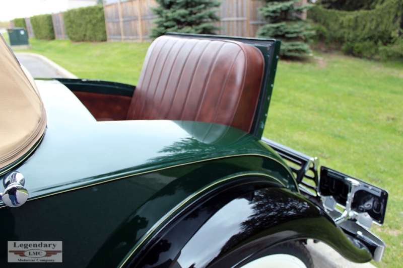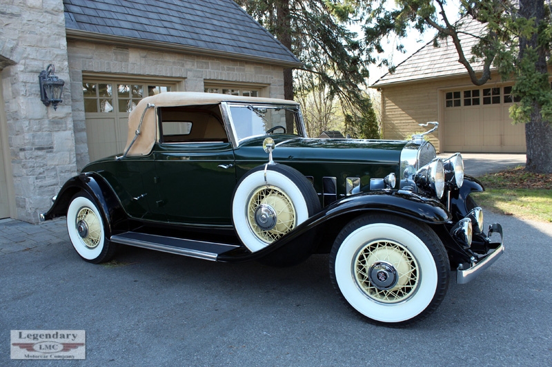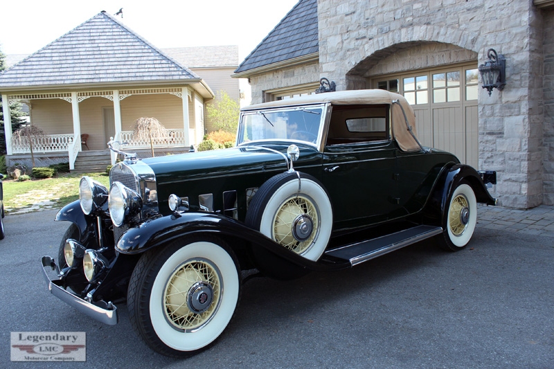 This Fleetwood bodied Convertible car has a smooth running 353 cubic-inch V8 engine. The original list price of this car was a staggering $2,945 in a day when a Ford Model A Roadster would set you back only $475!!! It features 2 plus 2 seating with the rear rumble seat dark brown interior with Naugahyde seating with tan soft top. Beautifully restored in two- tone Forest Green upper body with piano black fenders and running boards set off by the pale yellow wire wheels with period correct wide whitewall tires. The gleaming chrome grill features the famous Cadillac Goddess radiator cap and low slung driving lights. Previously owned by a collector from California this car actually completed the Great American Race from Norfolk VA to Disneyland in Anaheim CA . Since then it has been lovingly kept and maintained seeing casual use on sunny days. It is a fully functional classic car ready to take home drive and enjoy.