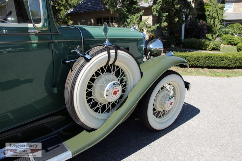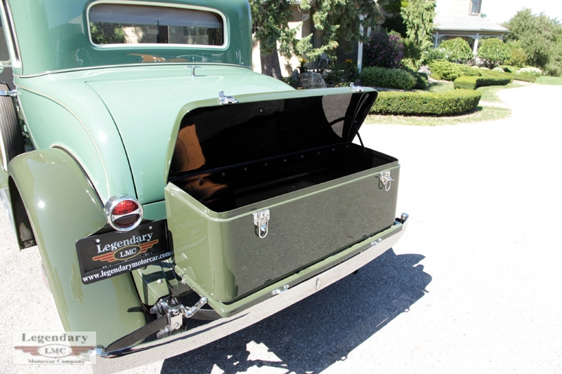 This two door coupe has had a full nut and bolt rotisserie restoration and is finished in stunning Gardenia green with Spruce Green fenders set off by pale yellow window highlights and wire wheels finished in the same color. The gleaming chrome is in show car condition, with incredible attention to details in all the fittings including the dual fender mounted spare tire mirrors. The drive train features smooth running flat head six cylinder engine that starts and run beautifully. The engine compartment is fully detailed and includes a firewall mounted oil can for servicing. The interior is done in grey cloth, with faux wood dash board and fully functional instrumentation. This car also features a retractable rumble seat for two with fender mounted stair treads and retractable rear window blind complete with floral bouquets. If you are looking for a fully restored , ready to drive and enjoy classic car, don't miss your chance to buy this one.