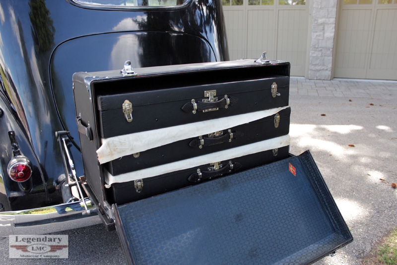 This Super Eight sedan is equipped with a smooth running straight eight engine with manual transmission. The car is in absolutely beautiful original condition, a testament to having been lovingly kept and exceptionally maintained by its previous owners over the years. The car starts and runs incredibly well, so well in fact at every stop sign you'll find yourself revving the engine to ensure it is still running!! Finished in its original factory applied black paint which considering is 77 years old, shows incredibly well. The interior is still wearing the original beige broadcloth in equally incredible condition considering the age. This Packard also comes with the matching bumper mounted trunk with fitted storage drawers. The incredible lines and classy demeanour of this car are set off by the dual fender mounted spares with side view mirrors and Packard wire wheels with period correct wide white wall tires. Since acquiring this car we have had it inspected by a few Packard aficionado's and the consensus has been that this is an incredible, original car and all feel they haven't seen a better original one. The factory applied paint is complete with signs of the original lead work showing through. Opening the door and you are greeted by the sight and aroma of original broadcloth. The car to this day remains a time capsule of how 1935 Packards were designed, assembled and finished. Most certainly a car which deserves to remain in its original condition, to be used and enjoyed for many years to come just the way it is. Where would you ever find another one like it, in this unrestored original condition as presented here?