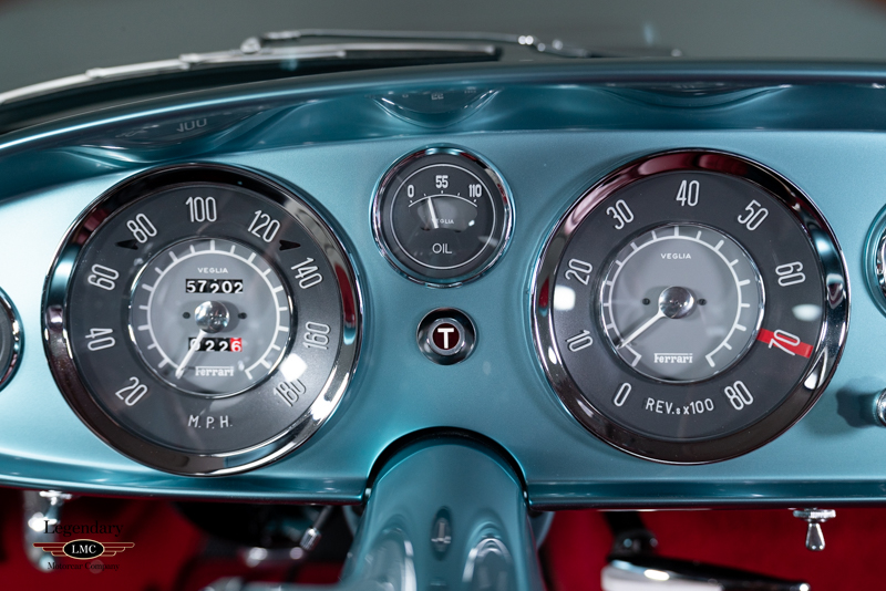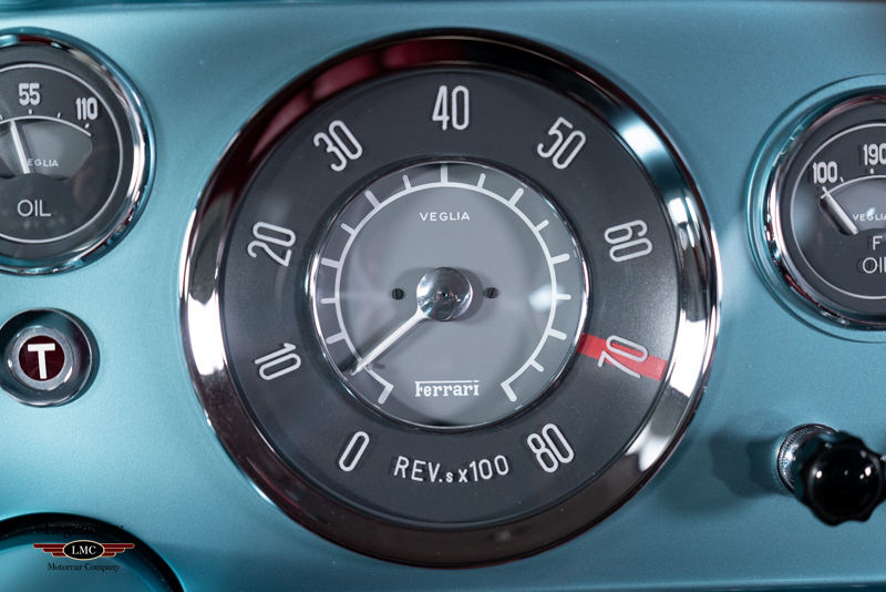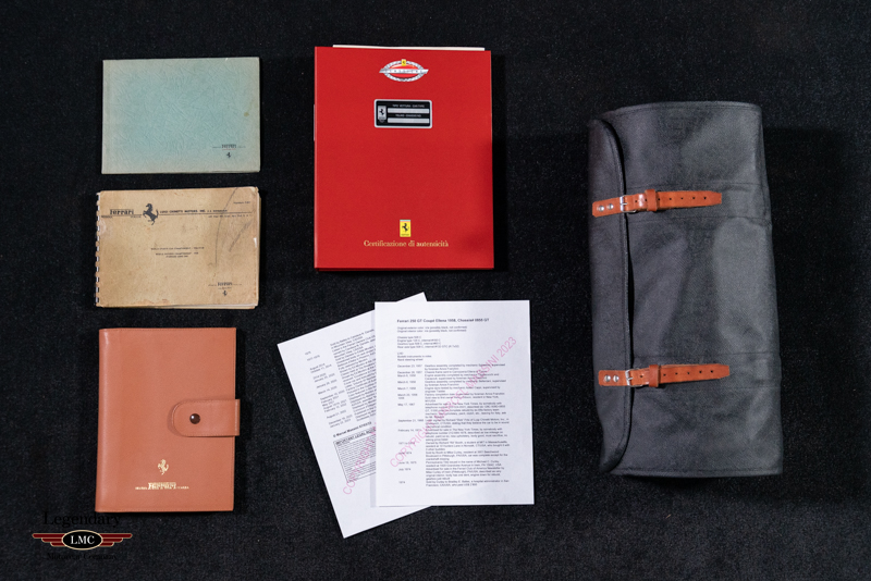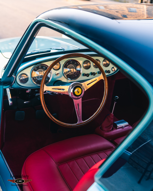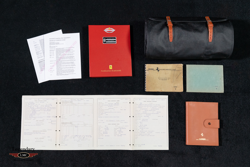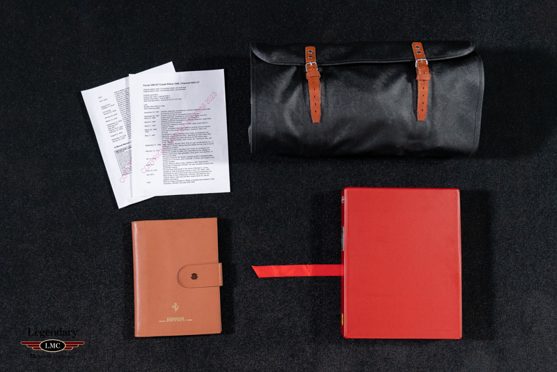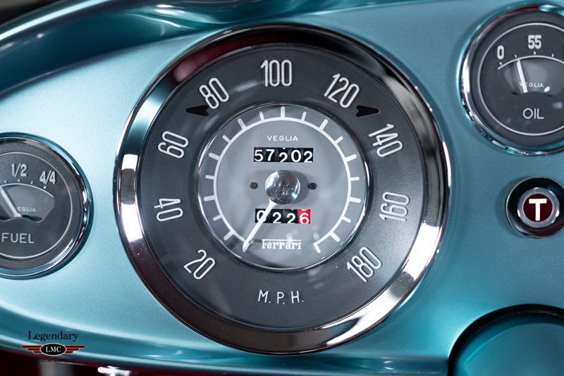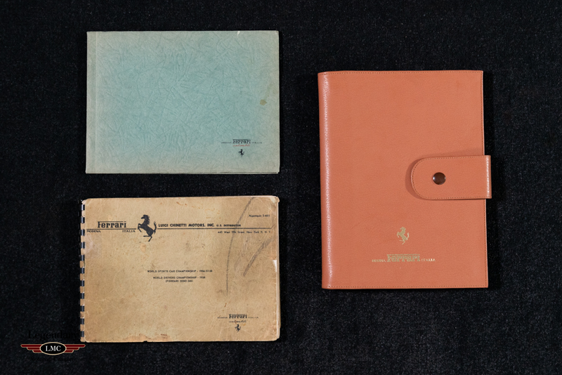 This beautiful example offered here for sale was completed on March 20th, 1958 at the factory and sold to its first owner Henry Gibson, a resident of New York,USA. This special Ferrari has a wonderful documented history from the beginning. The last owner purchased it in 2014 and would restore it to absolute perfection that you see here, winning multiple awards at some of the world’s most prestigious concours events. The restoration was completed in 2020 taking 3.5 years to complete with an extensive budget to produce an award-winning finish. Every nut and bolt was painstakingly restored to the highest level. Extreme attention to detail and thousands of hours spent to achieve what you see here today. Finished in the striking color combination of Azzurro Metallico accented with a Dark Blue roof and Pelle Rossa interior making this early Ferrari visually breathtaking. Utilizing extensive research beginning with numerous original factory documents and period publication pictures as well as in person inspections of 3 survivor Ellena’s of which 1000’s of pictures were taken to document and guide every detail of the restoration. Several restored cars were also inspected in person and referenced as needed - however highly scrutinized for correctness. Unlike many others, this example retains its numbers matching engine, gearbox, body, chassis, and differential. Adding to its rarity this example is believed to be the only example optioned with the dual brake master cylinder pedal box and vented/racing brake drums as specified in its factory build sheets. With its extreme originality and correctness this example was authenticated and has been awarded the coveted Red Book “Ferrari Classiche Certification ''.